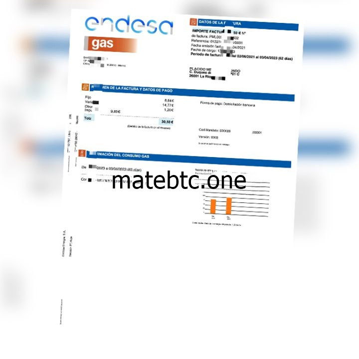 1、西班牙地址证明 endesa天然气账单西班牙语 Spain endesa Gas bill(欧盟地址证明)注:需提供英文姓名+英文地址