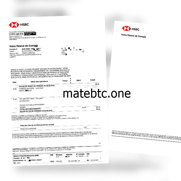 13、法国汇丰银行账单 HSBC FR(欧盟地址证明)注:需提供英文姓名+英文地址